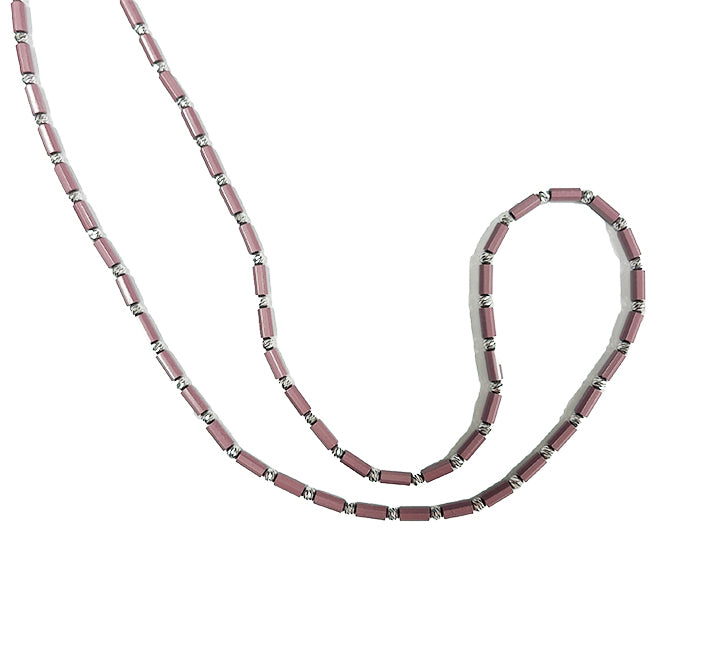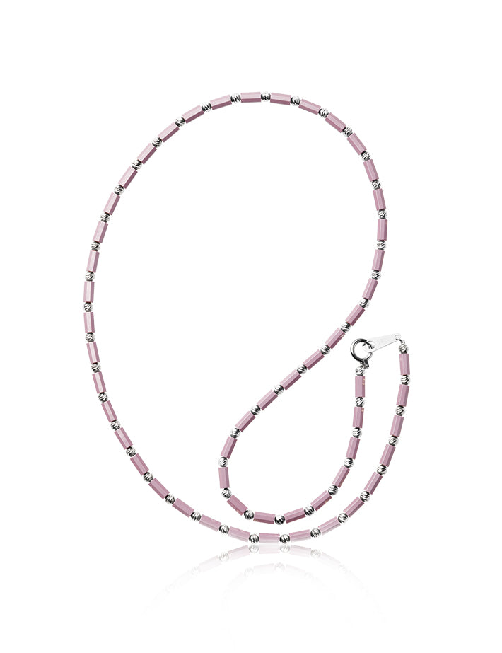 中線にはサージカルステンレスチェーンを使い、角柱の間にはミラーボールカット用の18金のパーツを挟んでいます。