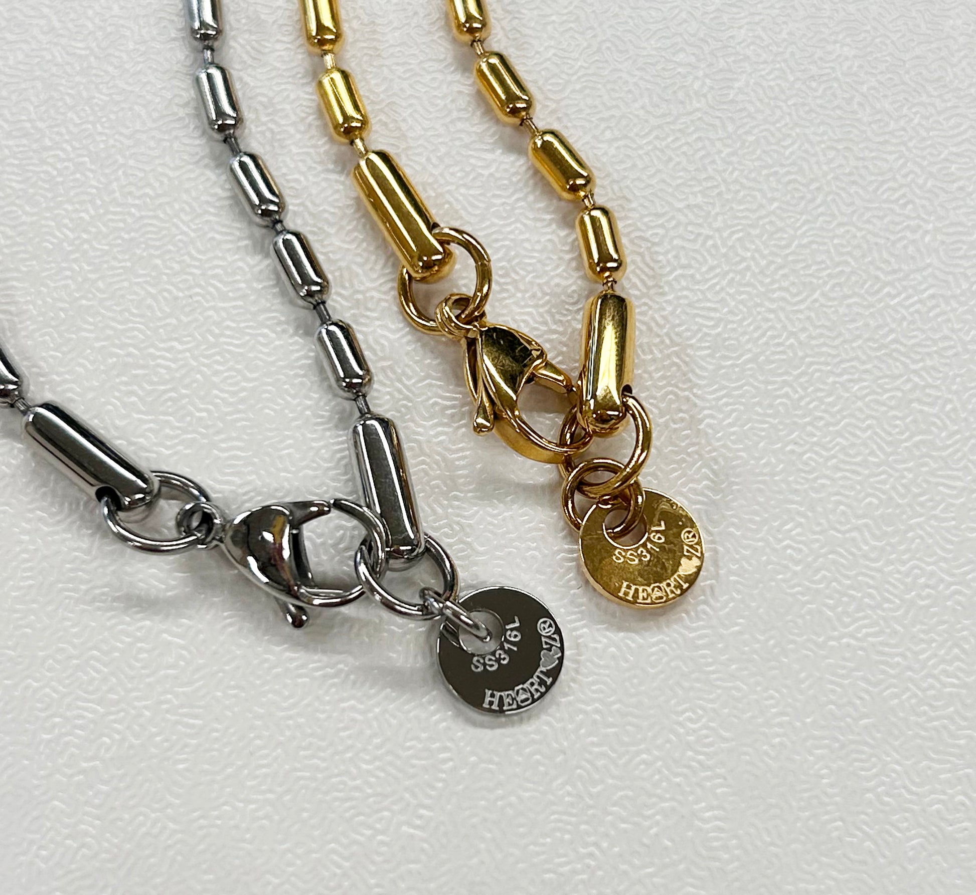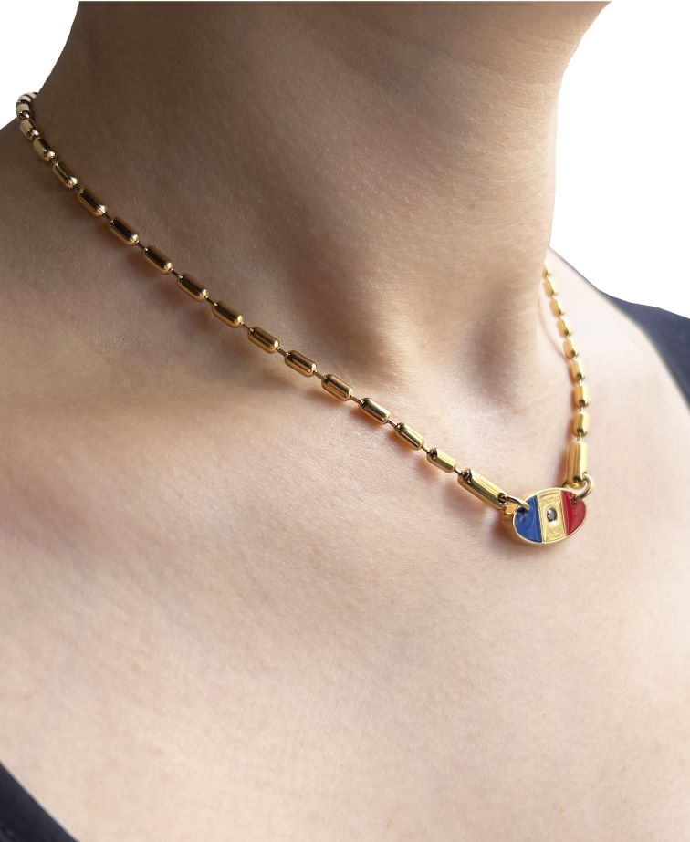 「メタリックネックレス Ⅱ 2024 IPバージョン」は、トップ及びチェーンのステンレス部分をIP(イオンプレーティング)処理した金色が輝く特別品です。