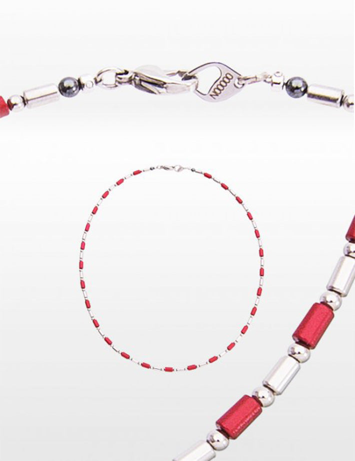 使用される石(赤、または白のパーツ)には、世界中のシリカの中で最も効能を発揮するといわれる希少な非結晶型の最高品質(北海道檜山郡上匡町山中産)のブラックシリカを使用しています。